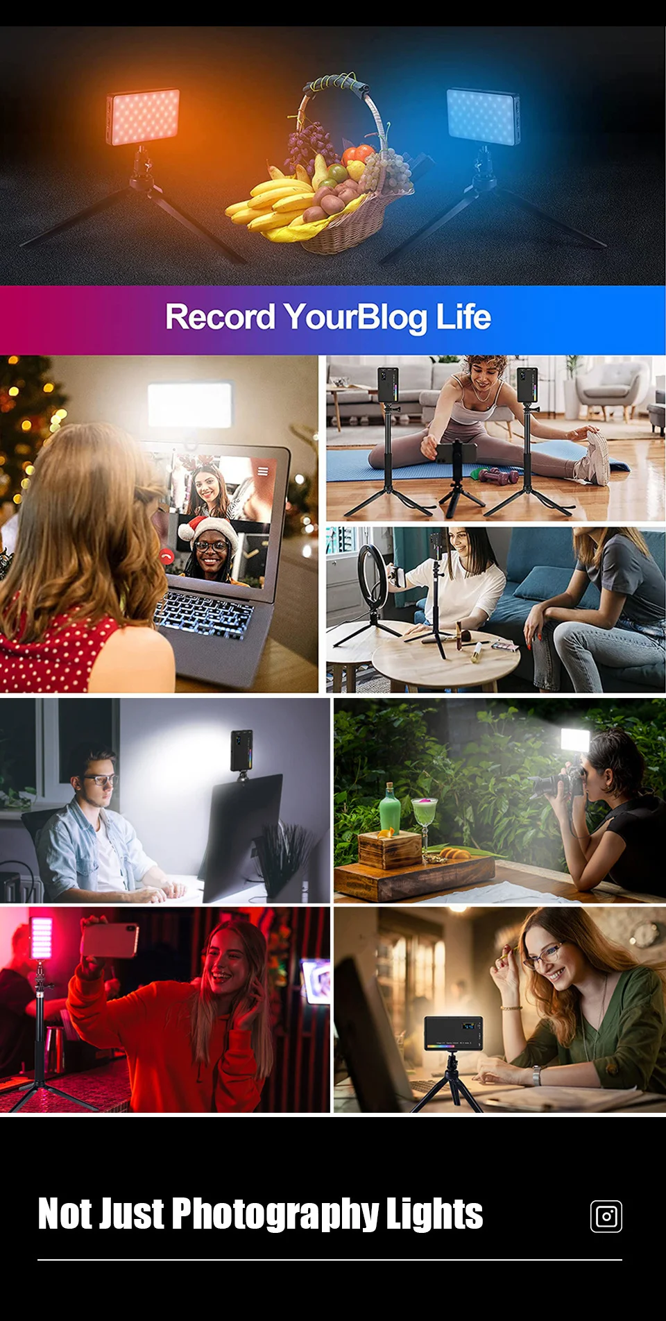 RGB LED Video Light Photography Fill Camera Lighting Panel CRI95+ 2500-9000K LCD Display Cold Shoe For Vlog Live Streaming DSLR